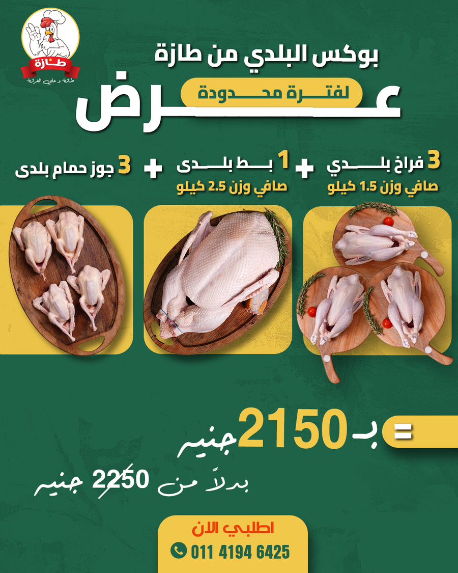 بوكس البلدي طازة يشمل عدة منتجات بلدي تربية بيتي بدون هرمونات وسن صغير بتستوي بسرعة ولحم طري فريش مغسولة بدقيق وملح وليمون خالية من الريش والزفارة