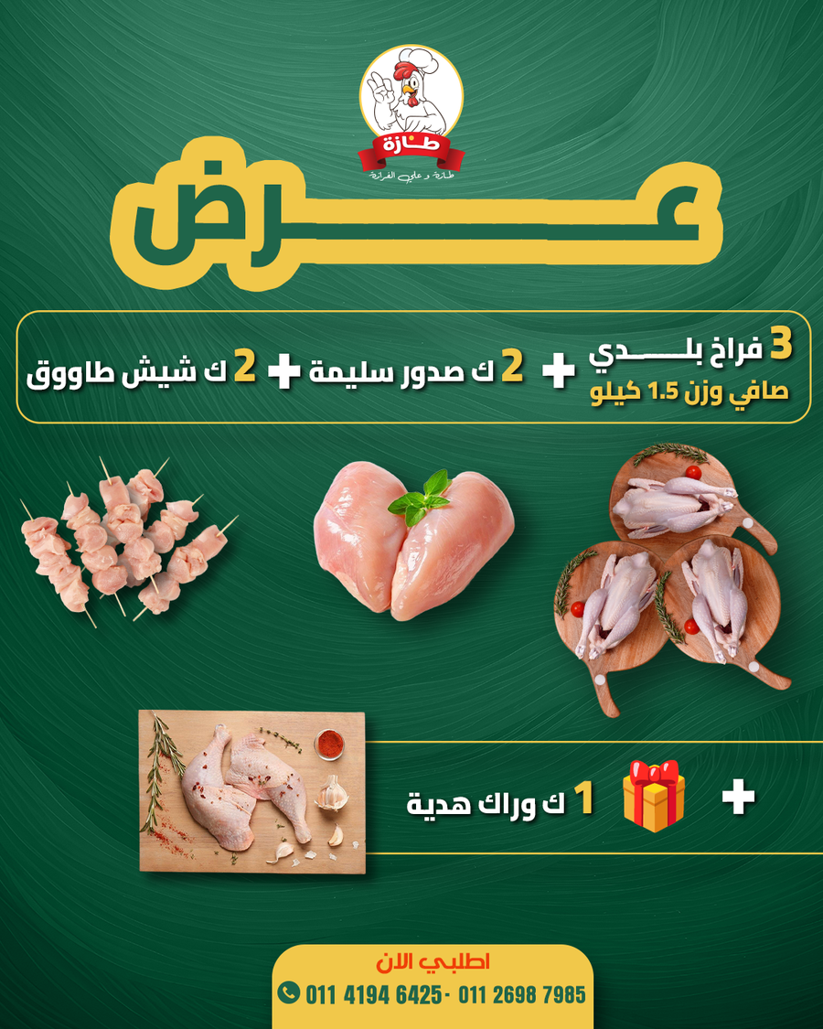 • فراخ بلدي حر 100% ومجزءات فراخ أبيض تربية بيتي 100% بدون هرمونات ولا أدوية