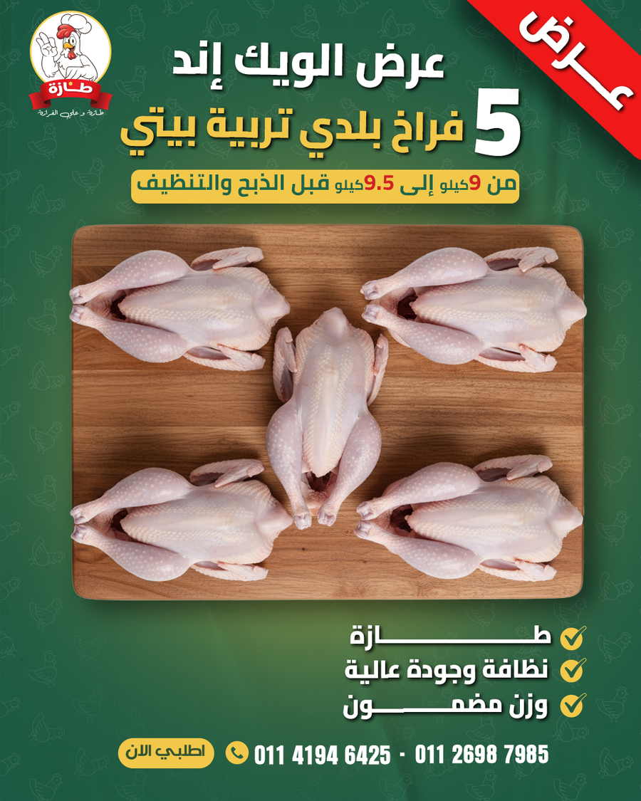 فراخ بلدي 100% تربية بيتي بدون هرمونات وسن صغير بتستوي بسرعة ولحم طري فريش مغسولة بدقيق وملح وليمون خالية من الريش والزفارة