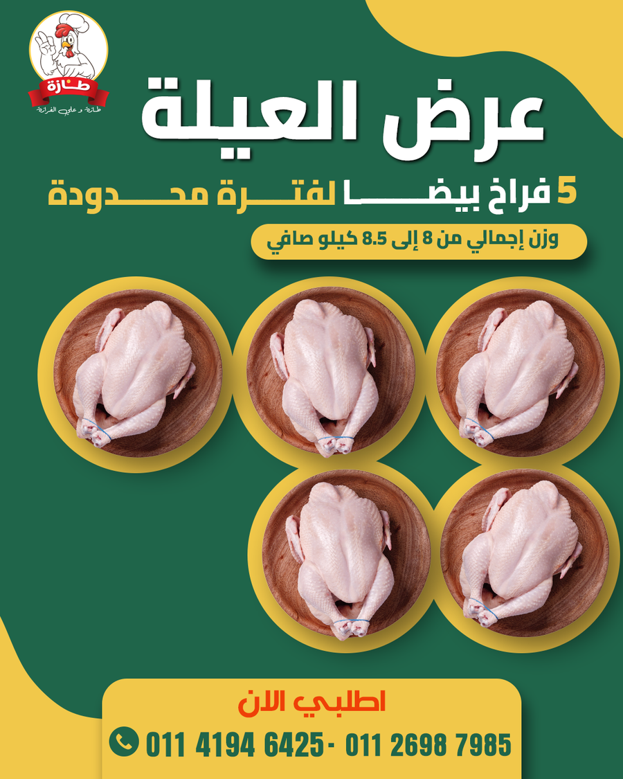 فراخ بيضا تربية بيتي بدون هرمونات وسن صغير بتستوي بسرعة ولحم طري فريش مغسولة بدقيق وملح وليمون خالية من الريش والزفارة